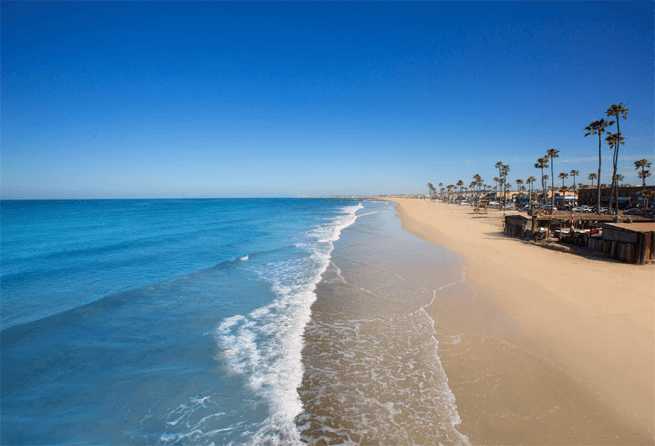 Newport Beach is home to the famous Corona del Mar. It has the Corona del Mar State Beach that has tons of activities like scuba diving, surfing, volleyball, snorkeling, swimming, and bonfires. It is a broad flat area with lots of room for volleyball courts and sunbathers.